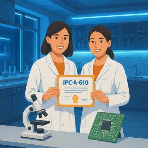 Ein Mitarbeiter unseres Prüflabors ist jetzt zertifizierter IPC-A-610 Trainer. Damit können wir unsere Fachkräfte direkt im Haus nach diesen Richtlinien ausbilden und zertifizieren – ein Vorteil, der unseren hohen Qualitätsanspruch bei der Analyse und Prüfung elektronischer Komponenten zusätzlich unterstreicht und den Wissenstransfer im Team stärkt.